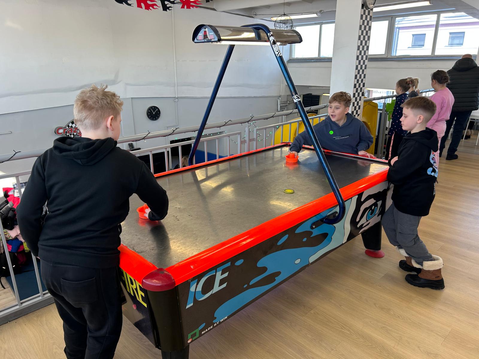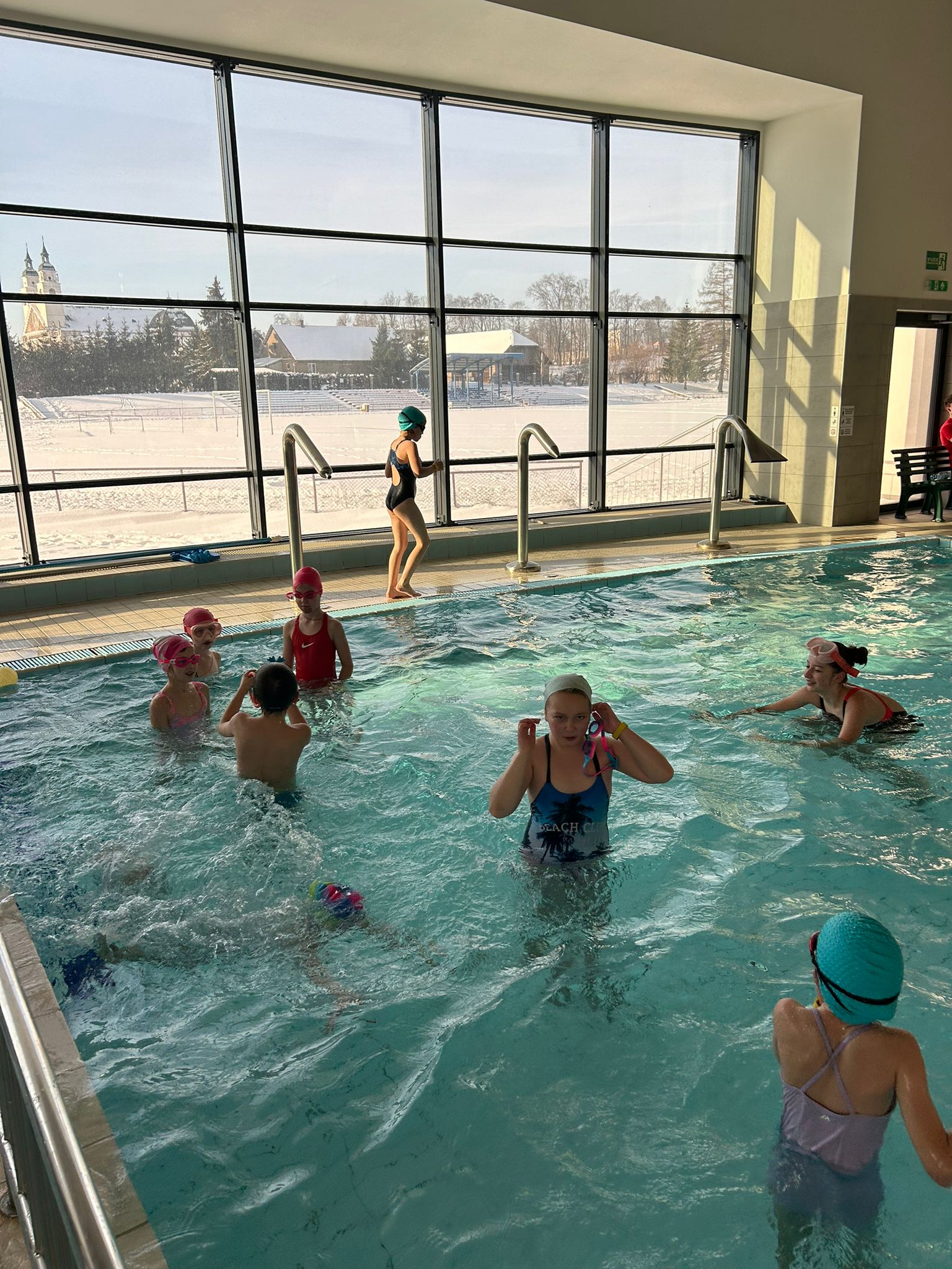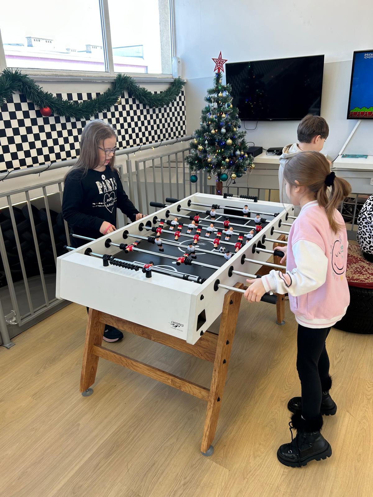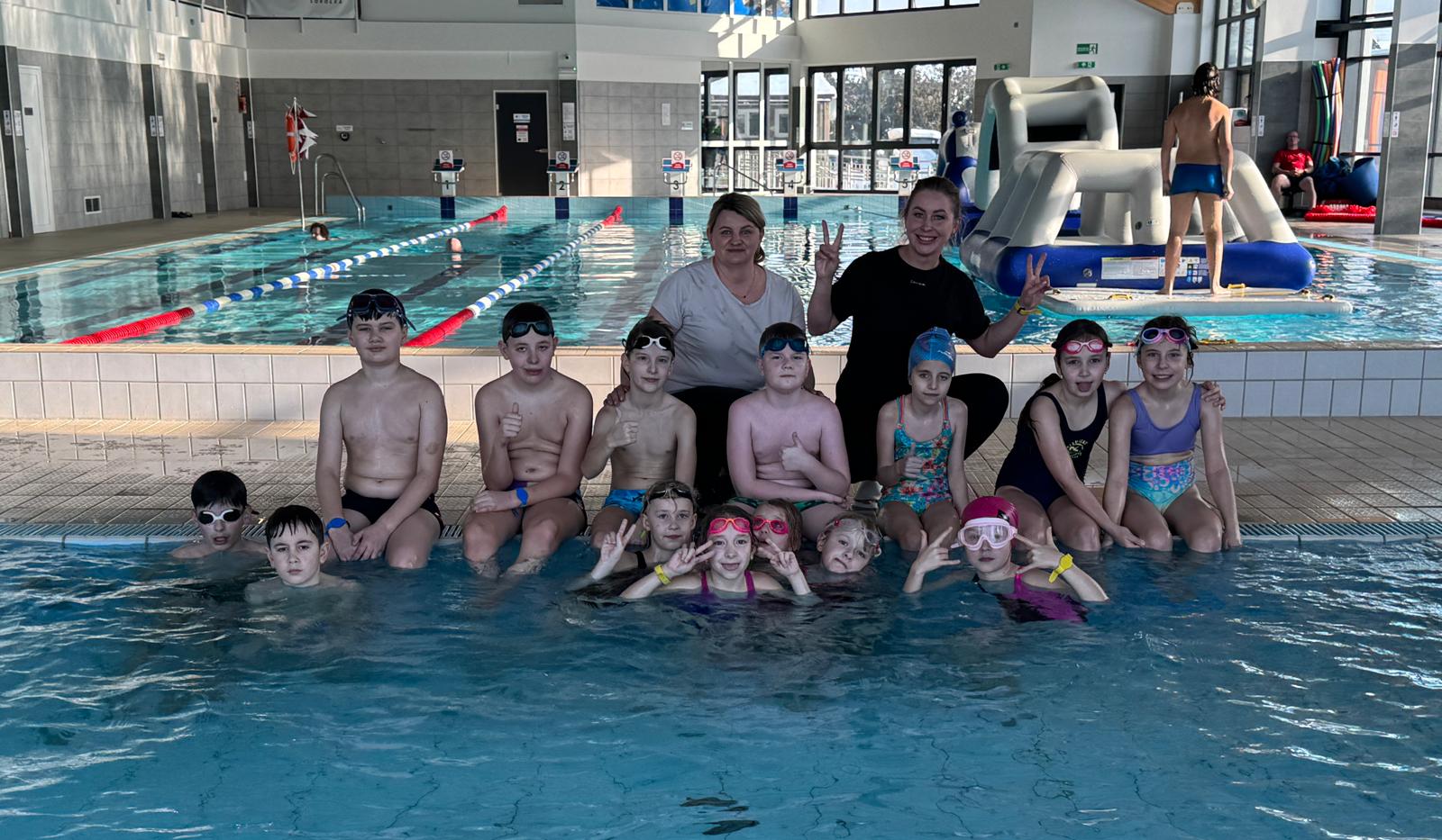 W środę dzieci spędziły czas na sportowo. Na początek uczyły się jazdy na nartach biegowych. Po wyczerpujących zmaganiach na śniegu przyszedł czas na chwilę odpoczynku i zabawy na pływalni i lodowisku. Na koniec dzieci odwiedziły muzeum retro gier.